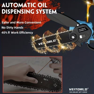 الطلاء > Ev Aletleri > 6 İnç Kablosuz Küçük Zincirli Testere | 21V Pil İle Çalışan El Testeresi, 2 Şarj Edilebilir Pil Dahil | Hafif Elektrikli Zincirli Testere, Ağaç Budama, Odun Kesme ve Bahçe İşleri İçin | Dış Mekan Projeleri İçin Mükemmel