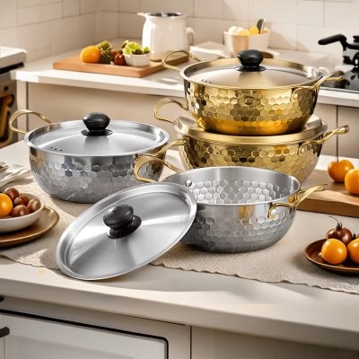 الطلاء > Ev Aletleri > [Paslanmaz Çelik Tencere Seti] 3 Parça Paslanmaz Çelik Tencere Seti | Çift Kulaklı Çok Amaçlı Kapaklı Çorba Tencereleri, Kore Sıcak Pot, İndüksiyon Ocak İçin Makarna ve Deniz Ürünleri Tenceresi, Açık Hava Kampı - Bulaşık Makinesinde Yıkanabilir, 304 Paslanmaz Çelik
