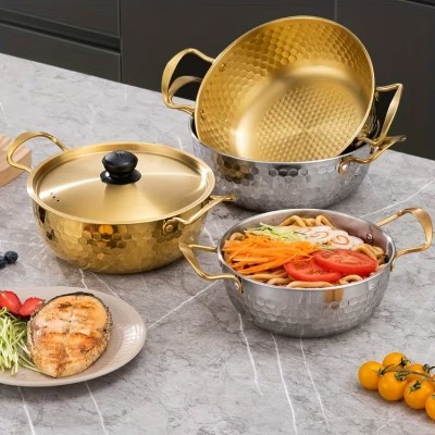 [Paslanmaz Çelik Tencere Seti] 3 Parça Paslanmaz Çelik Tencere Seti | Çift Kulaklı Çok Amaçlı Kapaklı Çorba Tencereleri, Kore Sıcak Pot, İndüksiyon Ocak İçin Makarna ve Deniz Ürünleri Tenceresi, Açık Hava Kampı - Bulaşık Makinesinde Yıkanabilir, 304 Paslanmaz Çelik