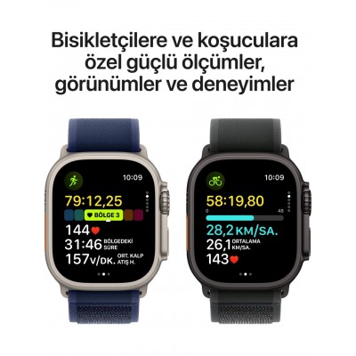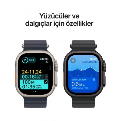 Apple Watch Ultra 2 [GPS + Cellular 49 mm] Akıllı Saat, Sağlam Titanyum Kasa Spor Saati ve [renk] [kordon]. Fitness Takibi, Hassas GPS, Eylem Düğmesi, Ekstra Uzun Pil Ömrü, Parlak Retina Ekran Apple Watch Ultra 2 [GPS + Cellular 49 mm] Akıllı Saat, Sağlam Titanyum Kasa Spor Saati ve [renk] [kordon]. Fitness Takibi, Hassas GPS, Eylem Düğmesi, Ekstra Uzun Pil Ömrü, Karbon Nötr NEDEN APPLE WATCH ULTRA 2 SATIN ALMALISINIZ? — Spor ve macera için mükemmel saat. Koşucular, bisikletçiler, yüzücüler, doğa yürüyüşçüleri, dalgıçlar ve daha fazlası için gelişmiş özellikler. Dayanıklı titanyum kasa şimdi pürüzsüz bir dokuya sahip siyah renk seçeneği. Süper parlak Hep Açık Retina ekran. Çift frekanslı, hassas, ileri seviye GPS.* Güçlü sağlık, güvenlik ve bağlantı özellikleri.* Ve normal kullanımla 36 saate kadar, Düşük Güç Modu’nda 72 saate kadar pil ömrü.* ÇOK DAYANIKLI, İNANILMAZ DONANIMLI — Aşınmaya karşı dayanıklı 49 mm titanyum kasa. Safir ön kristal. Geniş Digital Crown ve birçok farklı işlevi anında kontrol imkanı sunan, kişiselleştirilebilen Eylem düğmesi. MIL-STD 810H sertifikası.* 100 metre suya dayanıklılık.* ÖZGÜRLÜK ÇAĞRISI — Hücresel bir servis tarifesiyle iPhone’unuz yanınızda olmasa bile mesaj atıp arama yapın. Favori müziklerinizi ve podcast’lerinizi online dinleyin. Harita ile yol tarifi alın. ANTRENMANLARINIZI MAKSİMUMA ÇIKARIN — Antrenman uygulaması Kalp Atış Hızı Bölgeleri, özel antrenmanlar ve antrenman yükü gibi gelişmiş ölçümler, görünümler ve deneyimler sunuyor. Bu sayede antrenmanlarınızın zaman içinde vücudunuzu nasıl etkilediğine dair önemli bilgiler alabiliyorsunuz. KOŞUCULAR İÇİN — Çift frekanslı, hassas, ileri seviye GPS. Otomatik pist algılama. Ne kadar verimli koştuğunuzu anlamanıza yardımcı olan gelişmiş koşu ölçümleri. Isınma, toparlanma ve soğuma aralıkları ekleyerek kişiselleştirebilen antrenmanlar. BİSİKLETÇİLER İÇİN — Güçlü ölçümlerle bisiklet deneyiminizi bir üst seviyeye çıkarın. Sürüş hızınızı, kalp atış hızınızı ve yüksekliğinizi antrenman görünümlerinde inceleyin. Saatinizden başlattığınız bir bisiklet antrenmanı, daha rahat görebilmeniz için otomatik bir şekilde iPhone’unuzun ekranında Canlı Etkinlik olarak gösteriliyor. Fonksiyonel Eşik Gücü ve kadansı görebilmek için güç ölçer gibi Bluetooth aksesuarlarına doğrudan bağlanın. DOĞA YÜRÜYÜŞÇÜLERİ İÇİN — Çevrimdışı Haritalar sayesinde konumunuzu sadece Apple Watch’unuzu kullanarak takip edin. Üstelik Pusula uygulaması anlık rota, yükseklik, enlem ve boylam gibi temel navigasyon araçlarıyla dolu. En son nerede operatör sinyali aldığınızı bulun. Pusula Ara Noktaları ile konumunuzu işaretleyin. Geriye Dönüş özelliğini kullanarak geçtiğiniz yerleri kaydedin ve adımlarınızı geriye doğru takip edin. YÜZÜCÜLER İÇİN — Havuz yüzücüleri için otomatik kulaç algılama, tur sayma, tur süreleri, setler ve özel antrenmanlar. Açık su yüzücüleri, antrenman özetlerinde rotalarını görebiliyorlar. Gelgit uygulamasıyla dünya çapında 115.000’den fazla plajda gelgit durumlarını inceleyin. DALGIÇLAR İÇİN — Oceanic+ uygulamasıyla tam donanımlı dalış bilgisayarı yetenekleri. 40 metreye kadar derinliği ve su sıcaklığını algılama özelliği. EN13319 sertifikalı. GELİŞMİŞ SAĞLIK VE GÜVENLİK ÖZELLİKLERİ — EKG çekin.* Düzensiz kalp ritmi için bildirimler alın.* Gece boyunca alınan sağlık ölçümlerinizi görün. Yaşam Bulguları uygulamasıyla uyku durumunuzu takip edin ve gece boyunca alınan kalp atış hızı ve solunum hızı gibi pek çok sağlık ölçümünüzü görün.* Sert bir düşüş veya ciddi bir araba kazası gibi durumlarda otomatik olarak acil servise bağlanın. Ve sadece bir düğmeye basarak acil yardıma ulaşın veya sireni etkinleştirin.* * YASAL AÇIKLAMALAR — Bunlar ana ürün özelliklerinin bir özetidir. Daha fazla bilgi * YASAL AÇIKLAMALAR — Bunlar ana ürün özelliklerinin bir özetidir. Daha fazla bilgi edinmek için yukarıya göz atın.