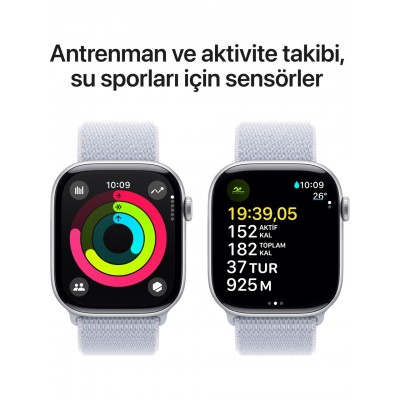 Apple Watch Series 10 GPS, 46 mm Gümüş Rengi Alüminyum Kasa ve Bulut Mavisi Spor Loop