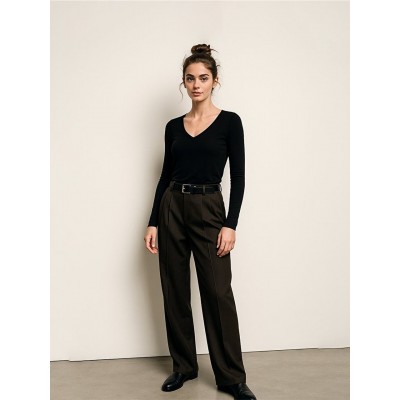 Uzun Kollu V Yaka Basıc Siyah Sweatshırt