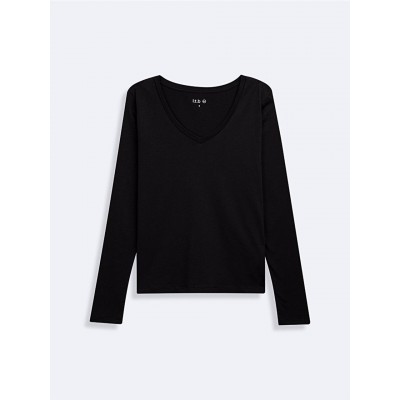 LTB Uzun Kollu V Yaka Basıc Siyah Sweatshırt