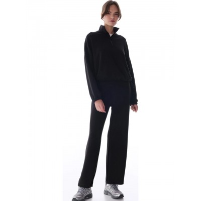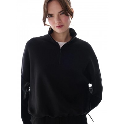 Penti Siyah Silky Touch Dik Yaka Fermuarlı Crop Sweatshirt