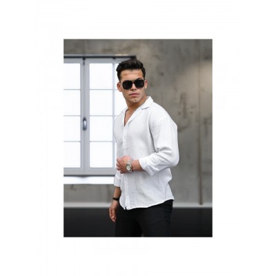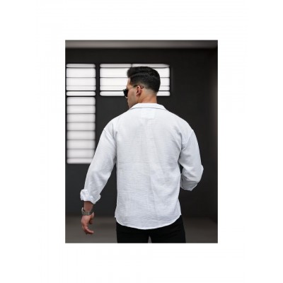 Apaş Yaka Oversize Müslin Kumaş Gömlek