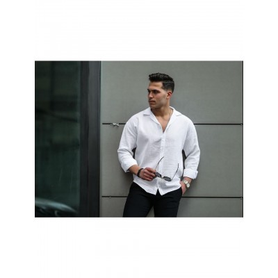 Valiberta Apaş Yaka Oversize Müslin Kumaş Gömlek - Beyaz