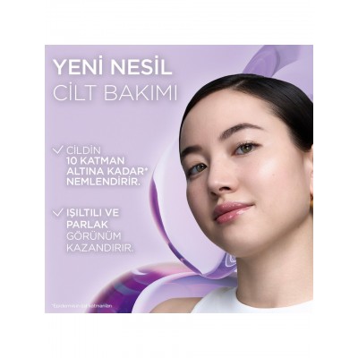 Asya’daki laboratuvarlarımızda geliştirilen bu nemlendirici yüz kremi formülü, cam cilt görünümü etkisi sunar. Yüksek oranda glikoller içeren formülü ile cildi yoğun şekilde nemlendirirken, su kadar hafif hissedilen ve ferah bir dokuya sahiptir. Cilde hızla nüfuz eder ve 10 katmana kadar** nemlendirir. Cilde ışıltılı bir görünüm kazandırır.
