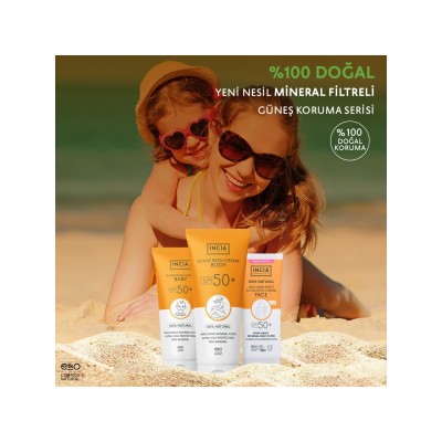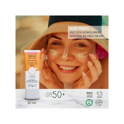 INCIA %100 Doğal Yüz Güneş Kremi Leke Karşıtı Aydınlatıcı Mineral Filtre UVA1 UVA2 UVB SPF 50+