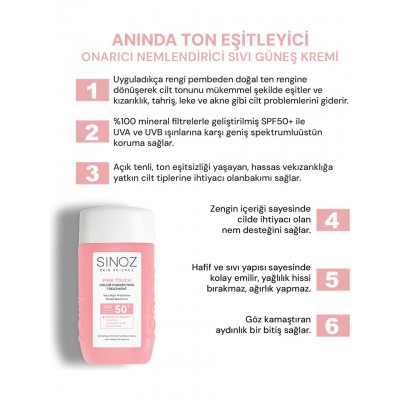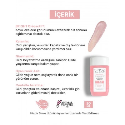 Sinoz Pink Touch Anında Ton Eşitleyici Onarıcı Nemlendirici Pembe Yüz Güneş Kremi Spf50