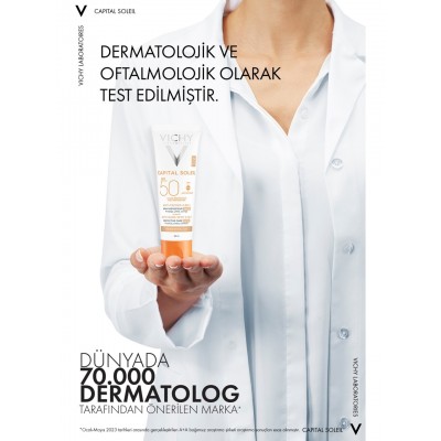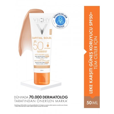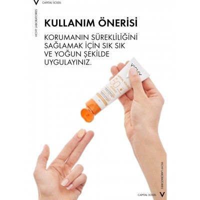 Vichy Capital Soleil SPF50+ leke karşıtı güneş kremi, tüm cilt tiplerinde yüksek koruma ve bakım sağlar