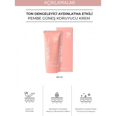 PrettySkin Yüksek Korumalı Spf 50+ Pa++++ Ton Eşitleyici Pembe Tonlu Güneş Kremi 50ML